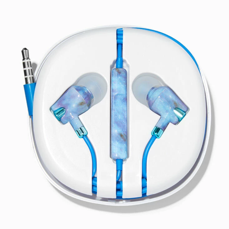 Jam out to all your favorite songs with this pair of fun earbuds! These earbuds fit snug in the ear, and feature a far-out galaxy design. They come with a round storage case.