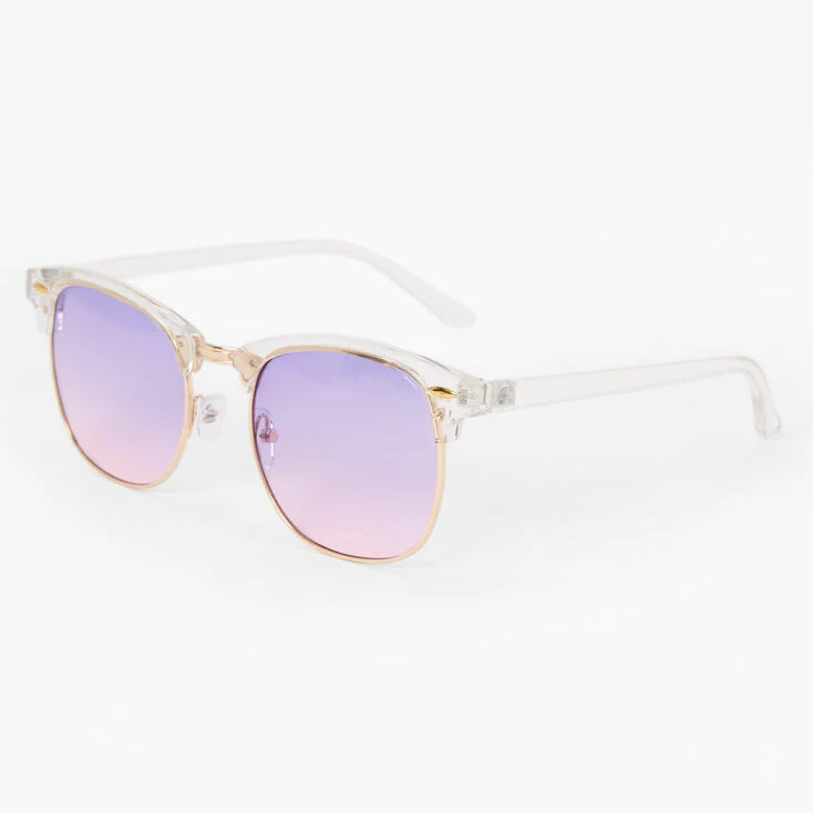 With clear frames, these sunglasses keep you on trend. The browline design has thicker plastic on the top and wire on the bottom for a cool, retro-inspired look.