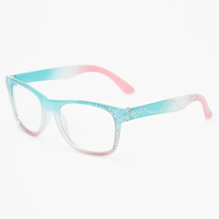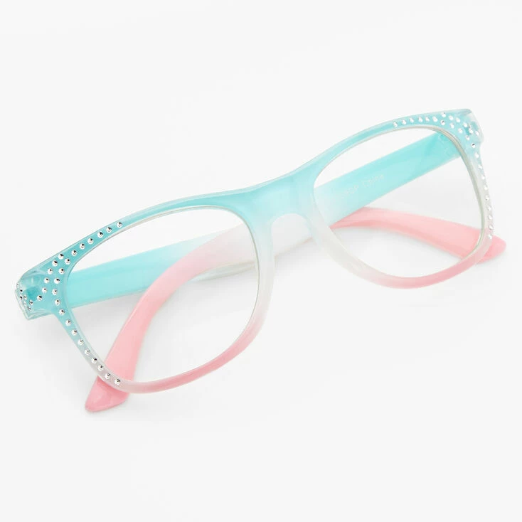 These frames are not only retro and springy, they bring style & class to every look you go for! They are non-prescription with clear lenses and a pastel, ombre design in mint and pink, accented with faux rhinestones along the front & arms. Pair these frames with any ‘fit, to bring power to your everyday. Step into Spring and School in Style (The three S’s)!